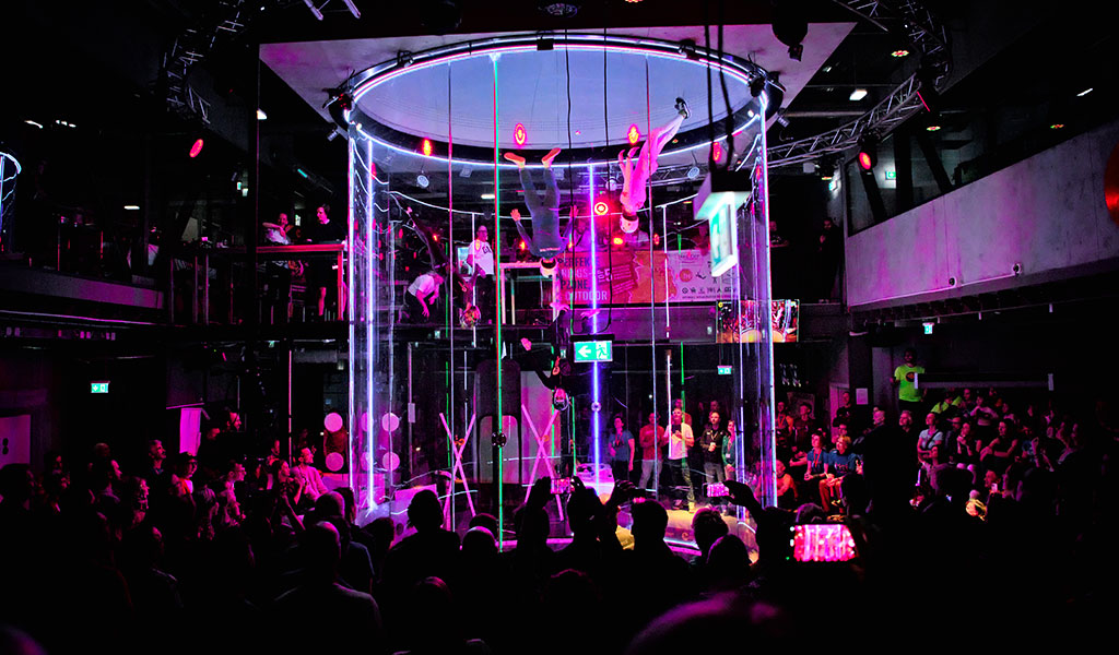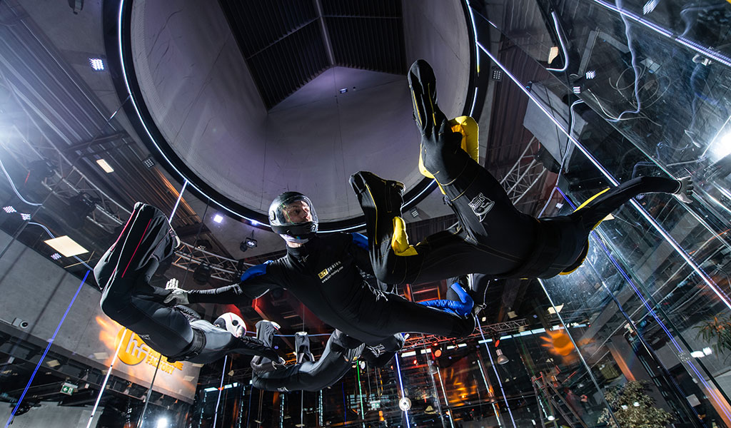 Ob Kind oder Erwachsener – im Windtunnel herrscht für jedes Gewicht und Manöver stets die perfekte Luftgeschwindigkeit – und somit beste Voraussetzungen für unsere Athleten. Direkt angrenzend befindet sich der Zuschauerbereich, von dem aus man die Flüge mitverfolgen kann – ein aufregendes Erlebnis für Flieger und Gäste!